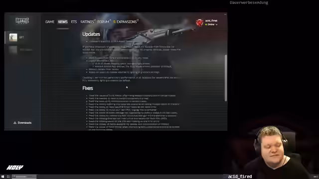 Die Sendung behandelte Probleme in Escape from Tarkov, Diskussionen über Autos und Lieferzeiten, sowie Quest-Fortschritte. Es gab eine Analyse der Patch Notes und technische Details. Des Weiteren wurden Delta Force Eindrücke, Spielmechaniken, Waffenvergleiche, taktische Manöver und die Extraction-Shooter 'Cycle' thematisiert. Eine Kooperation mit Holy Eistee wurde erwähnt.