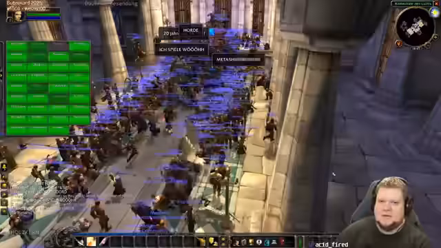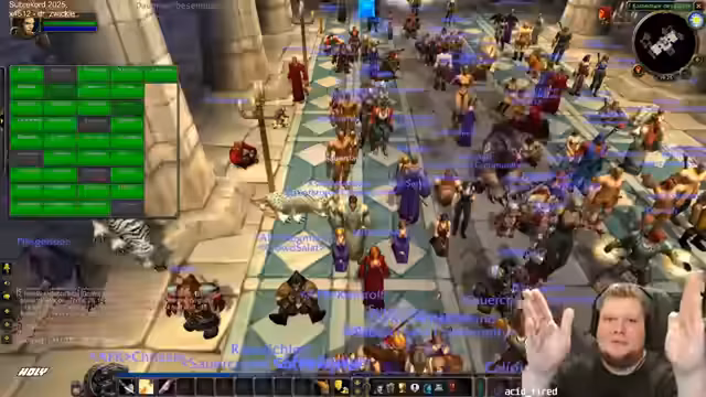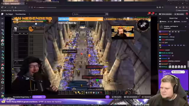 00:00:21Der Streamer kommt verspätet und unvorbereitet zum Stream, startet chaotisch mit technischen Problemen. Es geht um die Organisation des gemeinsamen Events, bei dem Spieler im Spielgebiet starten und um 18 Uhr gemeinsam zur Stormwind-Kathedrale laufen sollen. Layer-Probleme werden erklärt – Spieler sind in unterschiedlichen Instanzen, weshalb Raid-Gruppen (jeweils bis zu 40 Spieler) gebildet werden müssen, um denselben Layer zu erreichen.