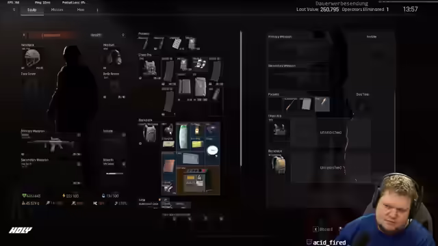 02:33:17Der Streamer thematisiert zunächst ein Problem mit der Audio-Synchronisation, das jedoch nicht eindeutig auf seiner Seite zu liegen scheint. Er lobt das Spiel für seine Intensität, vergleicht es aber auch mit Tarkov und Arena Breakout, wobei er Unterschiede in der Spielmechanik und dem Balancing feststellt. Er diskutiert über seine Müdigkeit und den Konsum von Kaffee, um wach zu bleiben. Der Streamer reflektiert über das Altwerden und seinen Kaffeekonsum, betont aber, dass er sich nicht von diesen Themen von seinem eigentlichen Ziel, dem Streamen von Valorant, ablenken lassen möchte. Er spricht über visuelle Probleme im Spiel und Schwierigkeiten mit den Spawns, lobt aber gleichzeitig, dass man schnell wieder ins Spielgeschehen zurückfindet. Der Streamer äußert sich frustriert über ein Problem mit seinem Stash, bei dem Items als Kringel dargestellt werden, was die Orientierung erschwert. Er vermutet, dass dies mit alten Items zusammenhängen könnte und sucht nach Lösungen, um das Problem zu beheben. Er spricht über verschiedene Items im Spiel, darunter Helme und Chest Rigs, und äußert seine Präferenz für bestimmte Ausrüstungsgegenstände.