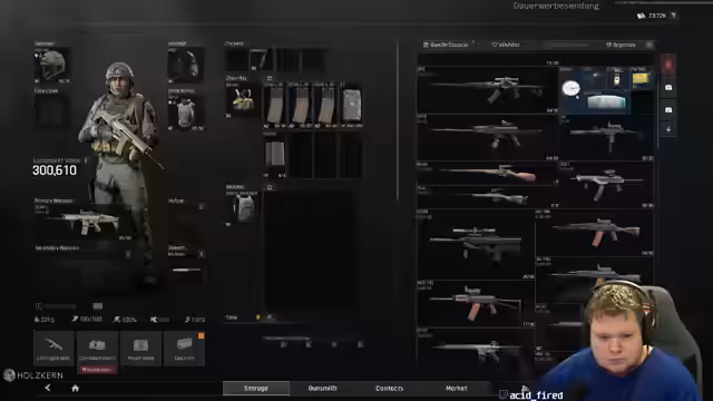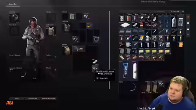 02:21:19Ein wiederkehrendes Thema sind technische Probleme im Spiel. Der Streamer stößt auf ein Kringeln im Inventar (Stash), das ihn beim Sortieren und Identifizieren von Items hindert. Er vermutet, dass dies an veralteten oder nicht mehr existierenden Items liegt, möglicherweise aufgrund seines alten Accounts. Des Weiteren sucht er nach Daily-Missionen und muss sich in der Menüstruktur zurechtfinden. Auch die Muni-Auswahl für seine Waffe, wie die Mini-14, wird thematisiert, wobei er die 9mm als nicht ideal empfindet. Ein weiteres Problem ist die mögliche fehlende Synchronisation von Ton und Bild, was er auf Twitch oder seine eigene Software (OBS) zurückführt.