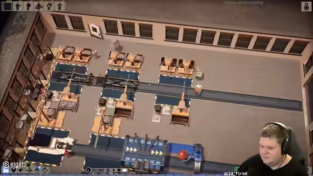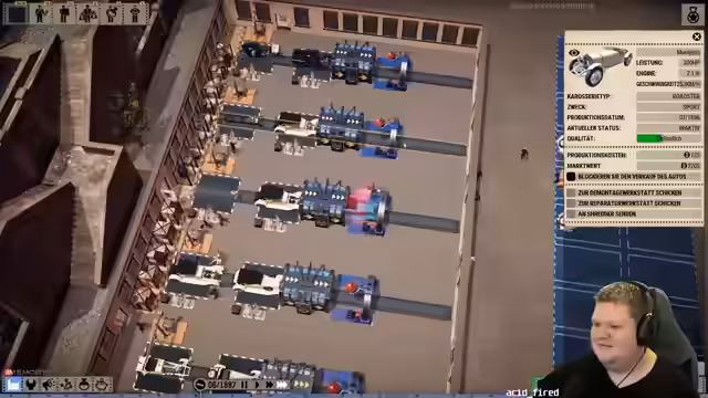 02:58:16Während des Umbaus stößt der Streamer auf ein besonders frustrierendes Gameplay-Problem: die Förderbänder können nicht zu einem gemeinsamen Band zusammengeführt werden. Dies zwingt ihn dazu, die Produktionsstraßen hintereinander zu schalten, was zu ineffizienten Leerlaufzeiten der Mitarbeiter führt. Der Mangel an Flexibilität bei der Anlagenplanung wird als ein signifikanter Mangel des Spiels empfunden, der den Produktionsfluss stört. Trotzdem setzt er seinen Versuch fort, die neue Anlage mit Qualitätskontrolle und Lackierung in Betrieb zu nehmen, um die Fahrzeugqualität und damit die Verkaufszahlen zu erhöhen.