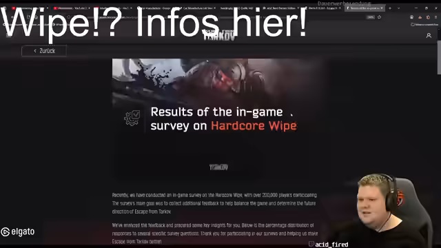 06:49:59Eine große Themenschwerpunkt ist der kürzlich erschienene Patch für Escape from Tarkov. Der Streamer analysiert die Patchnotes, insbesondere die Entscheidung, den Tauschmarkt (Flea Market) wieder einzuführen und Level-Einschränkungen aufzuheben. Er zitiert die offizielle Ankündigung und die Umfrageergebnisse des Entwicklers, bei der 50% der Spieler den Markt wiederhergestellt wünschten. Kritisch hinterfragt er die schnelle Drehung der Änderungen und die möglichen Auswirkungen auf das Spielerlebnis, insbesondere für diejenigen, die im Hardcore-Modus gespielt haben.