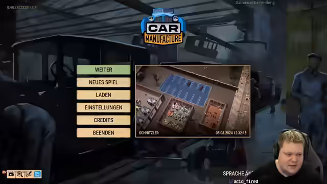 00:33:49Da Tarkov aufgrund des Patches nicht spielbar ist, diskutiert der Streamer über Alternativen. Vorschläge wie Arena Breakout oder Noobs Are Coming kommen zur Sprache, werden aber schnell verworfen, da die Spiele nicht überzeugen. Stattdessen entscheidet sich der Streamer für einen Revisit von 'Car Manufacturer', einem Strategiespiel, bei dem man eine Autofabrik aufbaut. Da das Spiel seit einem Jahr nicht mehr gespielt wurde, beginnt der Streamer zunächst mit den Basics: Er gründet die Firma 'Vollpfosten', erstellt die ersten Produktionshallen und stellt Mitarbeiter wie einen Mechaniker und einen Verkäufer ein.
