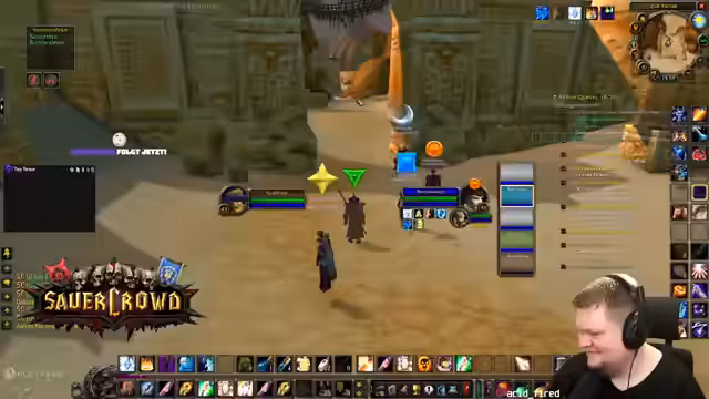 07:32:06Nach längerer Vorbereitung beginnt der Raid in Zul'Farrak. Der Streamer betritt den Dungeon mit einer neu formierten Gruppe und konzentriert sich auf seine Heiler-Rolle. Die Kommunikation via Voice-Chat wird eingerichtet und die Dynamik im Dungeonverlauf beobachtet, während er seine Heil-Zauber und Managements optimiert.