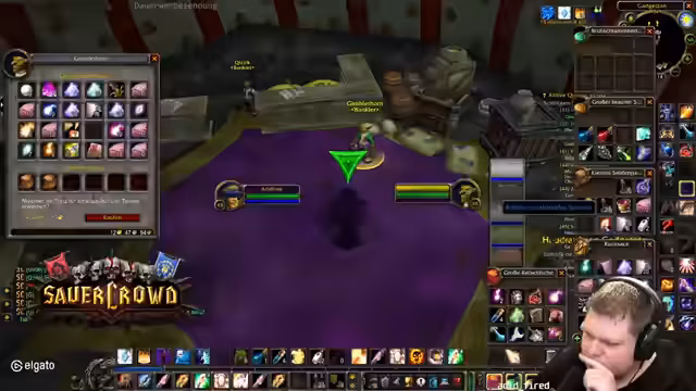 04:35:32Der Streamer berichtet über seinen Spiel-Fortschritt und seine aktuelle finanzielle Situation, die er als 'Broke fired' bezeichnet. Er beschäftigt sich intensiv mit den Berufen Verzauberung und Schneiderei, wobei er Materialien farmt, um seine Level zu steigern. Für die Schneiderei sucht er nach Rezepten wie einer Gürtelschnalle, und bei der Verzauberung entzaubert er kontinuierlich Material, um weitere Schritte im Levelaufstieg zu machen. Ein wiederkehrendes Problem ist der begrenzte Bankplatz, den er durch strategisches Platzmanagement lösen muss.