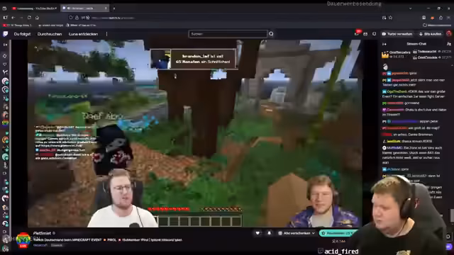 00:08:37Nachdem die technischen Hürden überwunden wurden, startet ein Testspiel auf dem Hypixel-Server. Beide Spieler sind neu im Spiel und machen grundlegende Fehler. Sie versuchen, sich gegenseitig zu helfen, stoßen aber auf Verwirrung bei der Bedienung, wie das Öffnen von Truhen oder die Steuerung der Figur. Der Streamer entdeckt sein Inventar mit der 'I'-Taste und die beiden beginnen, nach Ressourcen wie Weizen zu suchen, um sich auf das bevorstehende Battle Royale vorzubereiten, auch wenn ihre Koordination und Spielverständnis noch sehr ausbaufähig sind.