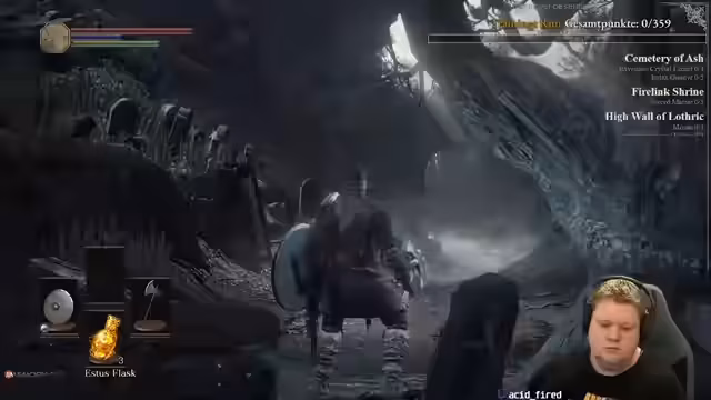 02:27:02Der Streamer kämpft sich durch verschiedene Areale, wobei er sowohl kleinere Gegner als auch stärkere Bosse wie die Kristallechse und die Bastrado bekämpft. Er erleidet dabei Rückschläge wie den Tod, was dazu führt, dass er bestimmte Bereiche wiederholen muss, um wichtige Gegenstände wie Estus-Scherben zu erhalten. Er diskutiert über seine Ausrüstung, insbesondere über seine Waffe, die er verbessern möchte, und trifft die strategische Entscheidung, sie auf 'Raw' zu upgraden, anstatt auf 'Dark', basierend auf seinem Gefühl für den Schaden.