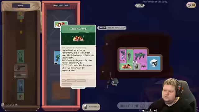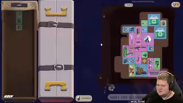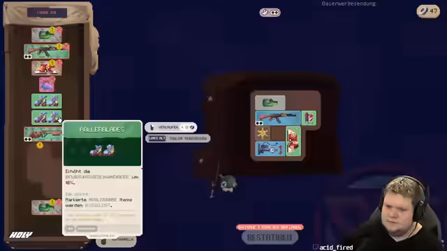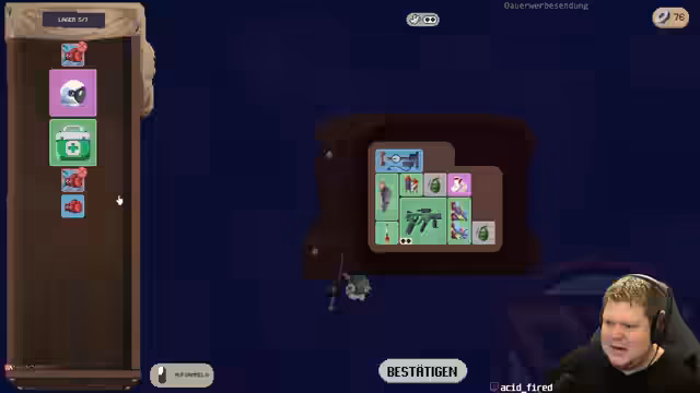 acid_fired erkundet Deadly Days Roadtrip, ein Spiel, das Elemente aus Brotato und Backpack-Battles kombiniert. Der Fokus liegt auf dem Sammeln von Ressourcen und dem Überleben gegen Gegnerwellen. Eine Twitch-Extension ermöglicht es Zuschauern, durch Abstimmungen das Spielgeschehen zu beeinflussen. Der Streamer experimentiert mit Item-Kombinationen und optimiert seinen Rucksack, um im Spiel voranzukommen.