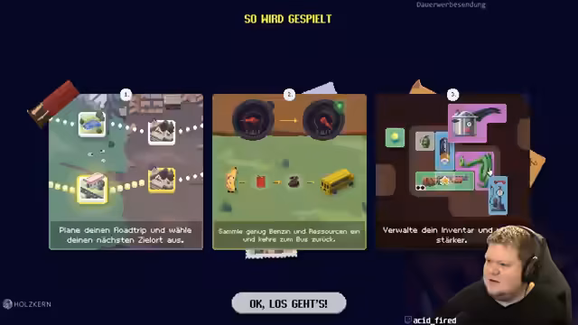 00:08:36Der Stream beginnt mit einem etwas ungewöhnlichen Start, da das Spiel noch nicht läuft. Es wird angekündigt, dass Deadly Days Roadtrip angespielt wird, wobei der Fokus zunächst auf einem einstündigen Test liegt, ohne festen Plan. Der Streamer hatte bereits am Vortag das Spiel heruntergeladen, jedoch fälschlicherweise die Demo gestartet. Nach anfänglichen technischen Schwierigkeiten mit der Game Capture-Einstellung wird das Spiel in 1080p-Grafik gestartet. Zuschauer haben die Möglichkeit, über eine Integration mitzuspielen, indem sie mit der Maus über das Bild fahren. Das Spiel wird auf Deutsch eingestellt, was jedoch einen Neustart erfordert. Es wird erwähnt, dass das Spiel eine Mischung aus Brotato und Backpack-Battles zu sein scheint, bei der man seinen Rucksack zusammenstellt und sich gegen endlose Gegnerwellen verteidigt. Die Basics des Spiels sind bekannt, da der Streamer bereits ein paar Mal zugeschaut hat, aber es ist das erste Mal, dass er es selbst spielt. Das Ziel ist es, genug Benzin und Ressourcen zu sammeln, um zum Bus zurückzukehren. Je länger man auf der Karte bleibt, desto schwieriger wird es.