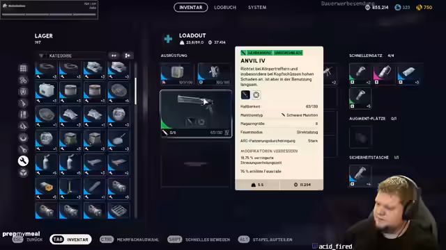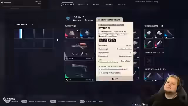 04:57:57Der Streamer bereitet sich auf eine bevorstehende 'Bunker-Action' vor und fragt seinen Mitspieler Nico nach Empfehlungen für die Ausrüstung. Nico rät zu 'Heavy Stuff', um Arcs zu besiegen, und warnt vor bevorstehendem PvP. Eine Zip-Line wird ebenfalls als nützlich erachtet. Der Streamer hat in den letzten zwei Tagen hauptsächlich PvE gespielt, da er solo unterwegs war, aber die Bunker-Mission verspricht eine Änderung dieser Spielweise. Er ist gespannt, wie man in den Bunker gelangt und ob es erhöhte Arx-Belohnungen gibt. Die Vorfreude auf PvP ist spürbar, da er seit zwei Tagen keinen Gegner mehr ausgeschaltet hat.
