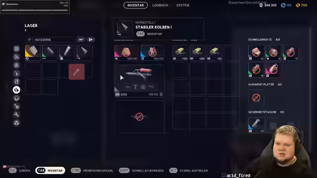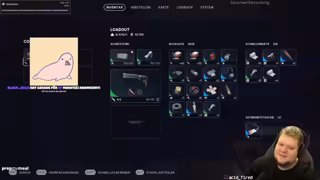 07:41:45Es wird über die Aktivierung einer „Security Bridge“ diskutiert und die Frage gestellt, ob man den Exit rufen soll. Ein Spieler wird gesichtet und beschossen, bewegt sich aber zu den Containern. Der Streamer entscheidet sich, den Gegner anzugreifen und eliminiert ihn erfolgreich. Die Munitionsverschwendung wird thematisiert, und es wird über die Effektivität von Waffen wie der „Anvil“ gesprochen, die als „geil“ und „lecker“ beschrieben wird. Die „Anvil“ wird als Waffe mit den meisten Kills hervorgehoben. Es wird über die Wahl der Waffen für die nächste Runde gesprochen, wobei eine „Hulk-AK“ und die „Veneta“ in Betracht gezogen werden. Die Spieler machen sich bereit für die nächste Runde, wobei die Wartezeit humorvoll mit der Zubereitung eines „6-Gänge-Menüs“ verglichen wird.