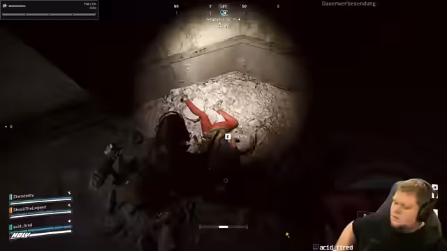 07:57:08Nach einem Kampf wird festgestellt, dass die Umgebung bereits gelootet wurde, was als „Frechheit“ empfunden wird. Ein Spieler wird gesichtet, und es kommt zu einem weiteren Schusswechsel. Die Mechanik des Kletterns und Hangeln im Spiel wird als „komisch“ beschrieben. Das Team versucht, strategisch vorzugehen und die Gegner zu umgehen. Es kommt zu einem weiteren Kampf, bei dem ein Spieler von einer „Pomp-Gun“ getötet wird. Die Schwierigkeit, Gegner in dunklen Umgebungen zu sehen, wird thematisiert, und es wird über die Einstellungsmöglichkeiten für das Fadenkreuz gesprochen. Die Teamdynamik wird humorvoll kommentiert, wobei der Streamer als „geborener Verkäufer“ bezeichnet wird, wenn es um seine Freunde geht, die „AFK reinspringen“. Es wird über die Effektivität des „Free Kid“-Modus auf anderen Karten diskutiert und die Schwierigkeit, kleine „Arks“ zu zerstören, angesprochen.