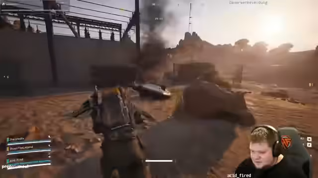 07:14:10Während einer intensiven Kampfsequenz wird die Positionierung der Gegner analysiert und ein Push beschlossen. Ein Gegner wird ausgeschaltet, während ein anderer sich noch in der Nähe befindet. Die Kommunikation im Team ist entscheidend, um die Positionen der Feinde zu verfolgen und strategische Entscheidungen zu treffen. Es kommt zu einem Schildbruch und einem Mangel an Schilden, was die Situation erschwert. Trotzdem gelingt es dem Team, weitere Gegner auszuschalten und sich gegenseitig zu heilen, was als „crazy“ und effektiv beschrieben wird. Die Freude über das erfolgreiche Ausschalten der Gegner ist groß, und es wird der Loot gesammelt, wobei besonders „Vindages von den Finders“ als begehrenswert empfunden werden. Die Mechanik des Heilens während des Wiederbelebens wird als „crazy“ und „richtig“ empfunden.