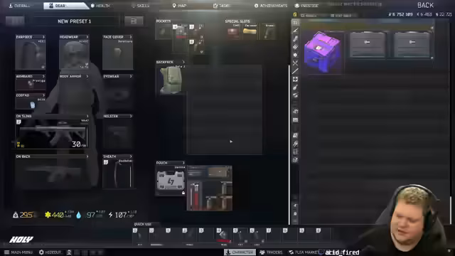01:12:14Nach einer erfolgreichen Raid-Runde widmet sich der Streamer dem Inventar-Management. Er verkauft überflüssigen Loot wie Wires und Munition über den Flea-Markt, um Platz zu schaffen. Er äußert sich frustriert über die neue Regel, dass man Gegenstände nur noch als „Found in Raid“ verkaufen kann, was den Handel erschwert. Gleichzeitig überlegt er, welche Gegenstände er behalten und für Quests oder zukünftige Runden aufheben soll, während er über die hohen Preise auf dem Markt lamentiert.