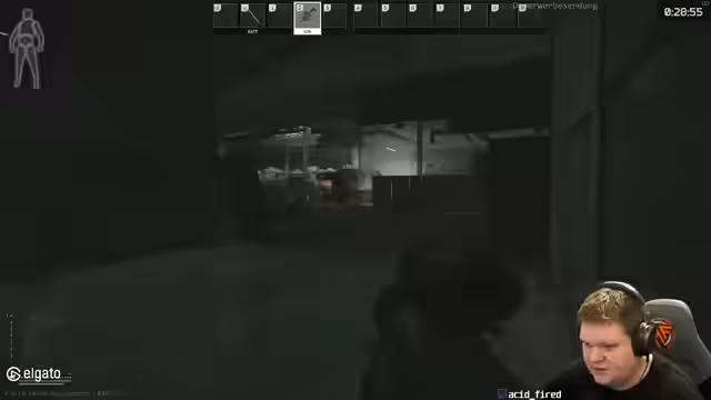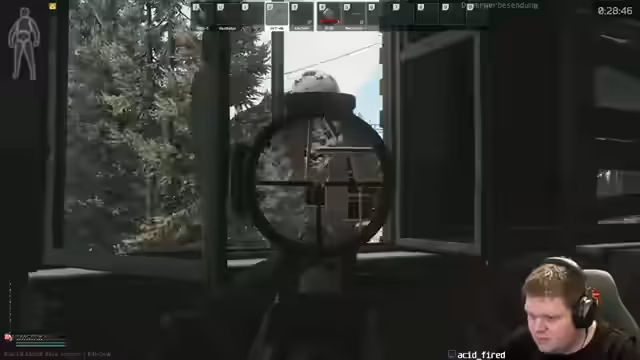 04:11:37Nach einer kurzen Pause ist der Streamer wieder im Spiel und bittet seinen Teammate, auf ihn aufzupassen. Er vernachlässigt jedoch die Absprache und bewegt sich allein, was zu einem unkoordinierten Vorgehen führt. Während des Gefechts gegen mehrere Scavs und einen Spieler (PMC) in einer Halle gibt es Verwirrung über die genaue Position des Gegners. Der Streamer erleidet durch einen Granatenwurf eines Scavs einen kritischen Treffer, was zu seinem Tod führt.