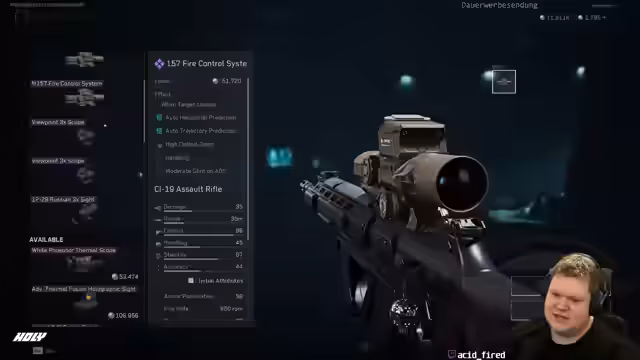 Bei acid_fired gab es in Escape from Tarkov Schwierigkeiten mit dem Rüstungssystem und der Munitionsperformance. Delta Force wurde gespielt, Spielmechaniken und Pay-to-Win diskutiert. Zudem wurde das Karriereende von Ton1 Nerd thematisiert, bevor es in eine Essenspause und zum Ende kam.