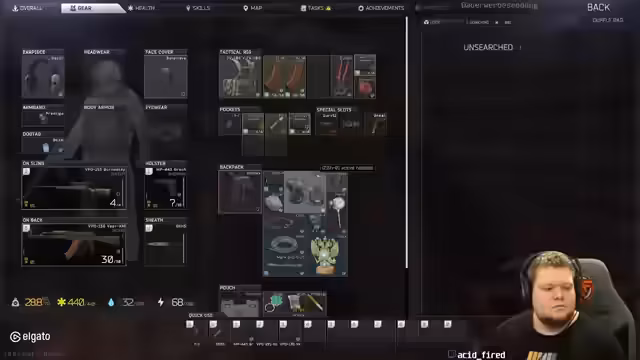 07:31:06Es wird festgestellt, dass in letzter Zeit mehr Spieler die Quest für Sturman machen, was zu mehr Action führt. Die Lever-Action-Waffe wird vorerst nicht mehr gespielt. Eine VPO 209 wird als gute Waffe eines getöteten Spielers erwähnt. Der 'Blaumannhelm' wird diskutiert. Es wird eine Pause von 'Dark and Darker' angekündigt, da 'Tarkov Only' für ein bis zwei Monate gespielt werden soll. Es wird über die Vor- und Nachteile von 'Dark and Darker' gesprochen, insbesondere über das ständige Nachspawnen von Spielern und die Schwierigkeit, Solo zu spielen, ohne immer der 'Assi' zu sein. Tetris oder Match 3 als Minispiel während der Matching-Time wird vorgeschlagen, um die Wartezeit angenehmer zu gestalten. Auch das Sortieren des Inventars und der Handel während der Wartezeit werden gewünscht.