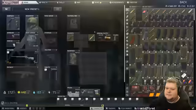 06:59:31Ein Hauptthema ist die ingame-Ökonomie. Der Streamer hat über drei Millionen Rubel, was als ausreichend angesehen wird, um weitere Ausrüstung zu kaufen. Die Gesprächsrichtung wechselt zur Hideout, dem Unterschlupf im Spiel. Es wird ein detaillierter Plan erstellt, welche Module und Materialien wie Working LCDs, Ventile und eine Autobatterie für den Ausbau benötigt werden. Der Fokus liegt darauf, eine Kette von Abhängigkeiten zu lösen, um bestimmte Fortschritte im Hideout zu erzielen.