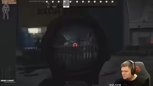 07:42:58Die Runde ist geprägt von intensiven PvP-Kämpfen. Der Streamer schießt auf Gegner, wird jedoch selbst tödlich getroffen. Er analysiert den Fehler und kommt zu dem Schluss, dass sein Versuch, den Gegner mit einer Granate zu überraschen, scheiterte und stattdessen er den Kill erhielt. Anschließend werden verschiedene Bausysteme wie Scav Runs und Bunker Klopse erwähnt, um Loot zu farmen, bevor es zu technischen Problemen und Stream-Synchronisationsproblemen kommt.