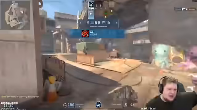 05:15:21Nach einer Phase des Experimentierens entscheidt sich das Team für eine neue aggressive Taktik, die sich kurzfristig als erfolgreich erweist. Ein gezielter Angriff auf die Mitte führt zu mehreren Eliminierungen. Die Gegner wirken überfordert und machen Fehler, die das Team für sich nutzen kann. Der Streamer lobt den taktischen Wechsel und das Timing des Angriffs. Anschließend wird die Bombe platziert, was zu einem weiteren Vorteil führt. Dennoch endet das Rundenende in einer Niederlage, da der Streamer aufgrund eines Fehlers eliminiert wird und das Team die Kontrolle verliert.
