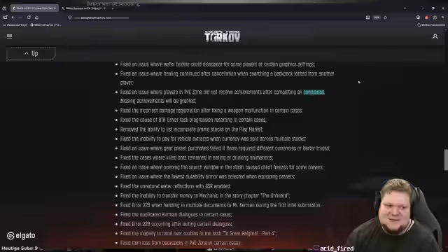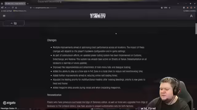 06:47:23Während des Streams wird auf aktuelle Änderungen im Spiel eingegangen, wie zum Beispiel eine neu eingeführte BTR-Figurin, die seit dem letzten Patch über Twitch-Drops erhältlich ist. Es finden Diskussionen über die Leistungsfähigkeit neuer Items statt, wie den 'Gliedschner', und es wird über die Performance-Updates nach dem neuesten Patch gesprochen. Spieler teilen ihre Beobachtungen und Befürchtungen über die tatsächlichen Verbesserungen der Spielflussigkeit und Darstellung.