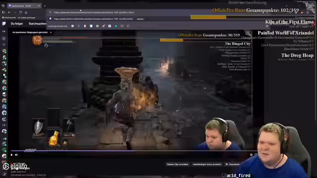 00:02:53Während des Streams interagiert der Streamer mit der Community, indem er auf Subscriptions und Abos eingeht, was aber gemäß den Vorgaben ignoriert wird. Das Gameplay dominiert weiterhin Dark Souls 3, bei dem er durch Missgeschicke und unerwartete Gegner stirbt. Er erwähnt dabei auch die Schwierigkeiten, durch das Spiel zu navigieren, ohne sich spoilen zu lassen, und diskutiert die Regeln seines eigenen, selbstauferlegten Runs. Ein Absturz und ein Neustart des Spiels führen zu einer kurzen Unterbrechung.