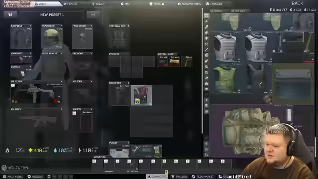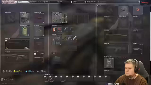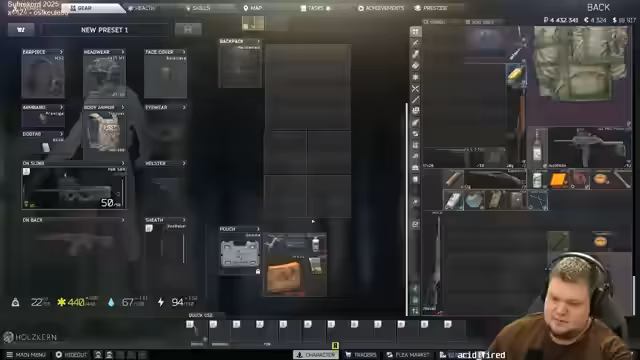 04:25:30Der Streamer konzentriert sich auf das Spiel Escape from Tarkov (EFT) und erkundet verschiedene Gebäude auf der Karte. Er tötet mehrere Gegner und sammelt deren Ausrüstung, darunter Waffen wie eine M1A und Rüstungen. Eine Herausforderung ist der Verlust eines Rucksacks, der im Treppenhaus versteckt werden muss. Es werden taktische Entscheidungen getroffen, wie der Weiterzug zur nächsten Villa und die Frage, ob ein Reset des Charakters sinnvoll ist.