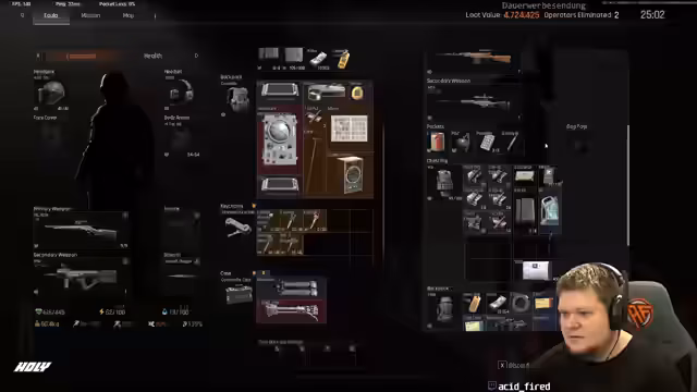 04:50:18Die Runde beginnt vielversprechend mit dem Auffinden eines Meter-Loots im A-Gebäude. Der Streamer sichert die Beute sorgfältig und betont, dass man aus dem Versteck ablooten sollte. Er beschreibt die Freude über den gefundenen Container und das gesamte lootete Gut in dieser Runde, was sich auf drei Millionenplus summiert, inklusive eines gesicherten Armes und weiterer Ausrüstung. Er zeigt sich besonders zufrieden mit dem Fund der schweren Tasche.