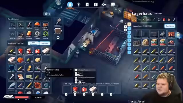 00:00:40Der Stream beginnt mit technischen Herausforderungen bei der Audiowiedergabe im OBS, bei der der Ton des Videos für die Zuschauer fehlte. Nach der Lösung dieses Problems wird das Spiel vorgestellt. Der Streamer startet einen Raid in einem PvE-Survival-Spiel, bei dem er nach Ressourcen wie Metallplatten und Holz sucht. Er erkundet eine Karte, in der man durch das Schlafen den Zeitvorrat regenerieren kann, und versucht, Rüstung und Munition zu farmen. Ein wiederkehrendes Problem ist der begrenzte Stauraum, der es schwierig macht, Beute mitzunehmen.
