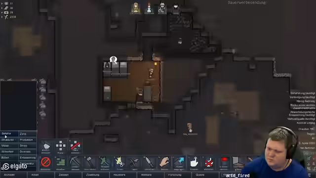08:26:18Nachdem die technischen Hürden überwunden sind, beginnt der Streamer mit dem Aufbau seiner RimWorld-Kolonie. Er erstellt die Kolonie mit dem zufälligen Namen 'Schnitzelrobben' und führt die Kolonisten durch die grundlegenden Überlebensaufgaben, wie das Bauen einer ersten Unterkunft und das Abbauen von Ressourcen. Er interaktiviert mit dem Chat, indem er die Namen der Kolonisten aus dem Zuschauerkatalog nimmt und versucht, ihnen Arbeit zuzuweisen.