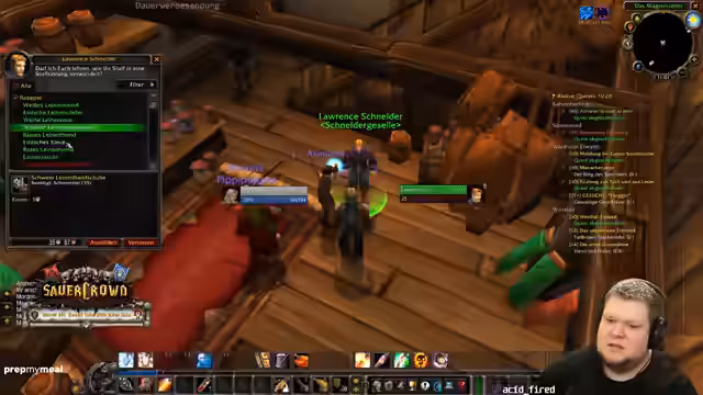 01:15:34Acid_fired schließt mehrere Quests ab, darunter das Sammeln von Wolfsfleisch und Murloc-Teilen, um Erfahrungspunkte und Gold zu erhalten. Er verwaltet sein überfülltes Inventar, verkauft unnötige Gegenstände und erwägt den Kauf größerer Taschen. Gleichzeitig besucht er Händler und Lehrer, um Handwerksfertigkeiten wie Schneiderei voranzutreiben.