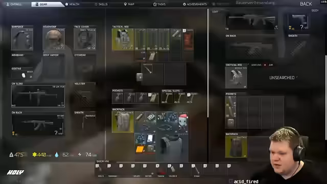 04:47:46Die Streamerin vergleicht die Veröffentlichungsjahre von World of Warcraft (2005) und Tag der Abrechnung (2016), um zu verdeutlichen, dass die Spielzeit schwer zu messen ist. Sie spricht über ihre Erfahrung in der Beta von Tarkov 2 und beklärt den Verlust wichtiger Schlüssel. Im Spiel erkundet sie eine Map, wobei sie über Loot-Spawns nachdenkt und den Sound-Modus kritisiert, der für Verwirrung sorgt und kurzzeitig ausfällt.