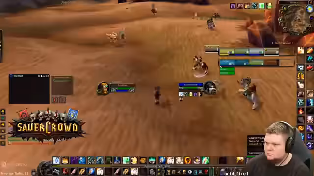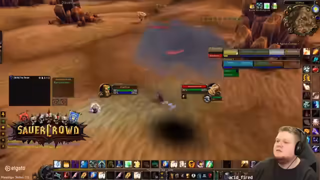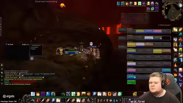 10:01:23Der Stream startet mit einer strategischen Durchquerung von Moltenchor, wobei das Team auf gefährliche Bereiche wie Lava und aggressive Mobs aufmerksam ist. Besondere Vorsicht ist bei einem Hund in der Nähe eines Camps geboten, um einen unbequemen Kontakt zu vermeiden. Die Gruppenbewegung ist koordiniert, und alle halten eng zusammen, um sich als Einheit sicher durch die gefährliche Zone zu bewegen und keine Mobs zu provozieren.