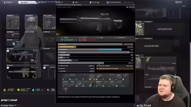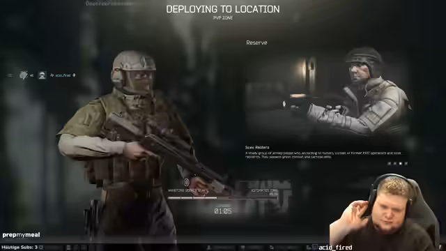 00:00:00Der Stream beginnt mit dem Einstieg in einen Tarkov-Raid. Der Spieler stürzt direkt in das Geschehen und sucht nach Gegnern, wobei er zunächst in einen Hinterhalt gerät und von einem Gegner überrascht wird. Nachdem er sich stabilisiert hat, begibt er sich in einen kleines Gefecht, bei dem er einen Gegner ausschalten kann, jedoch durch einen zweiten Gegner getötet wird. Es folgt ein kurzer Vorfall, bei dem der Streamer kurz nach dem Wiedereinstieg von einem anderen Spieler eliminiert wird, was ihm den Vorwurf einbringt, den Loot nicht gesichert zu haben.