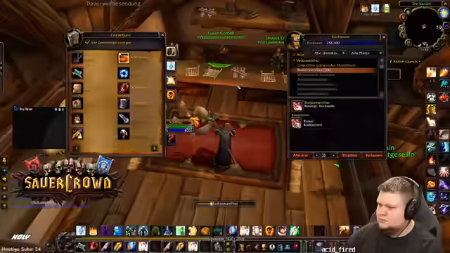 06:36:06Nach einer kurzen Unterbrechung wird die letzte Phase der Vorbereitung für den Raid eingeleitet. Der Streamer beschwert sich über Platzprobleme im Inventar, was ein häufiges und frustrierendes Problem im Spiel darstellt. Auch die Suche nach Buffs, wie dem DM-Buff, wird fortgesetzt. Die letzen Rüstungsteile werden verzaubert und die endgültige Gruppenzusammenstellung für den finalen Anlauf ins Molten Core festgelegt.
