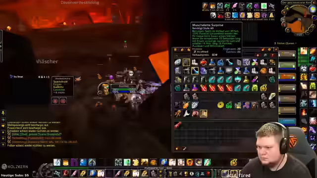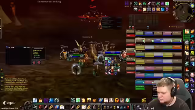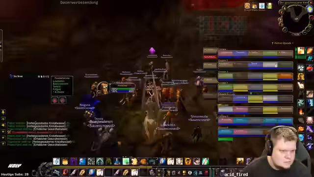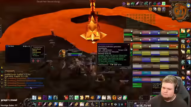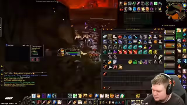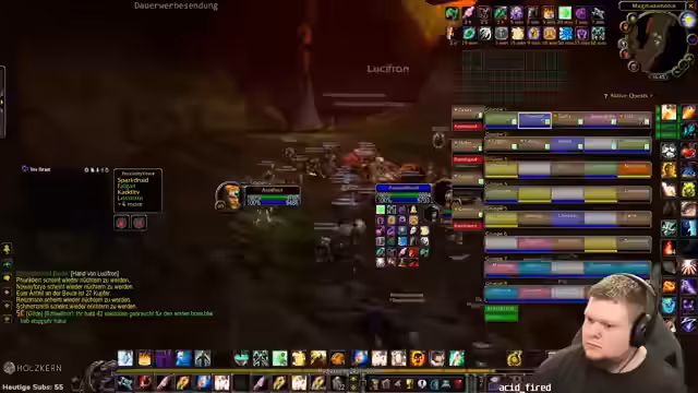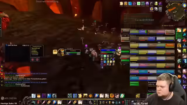 09:04:55Zu Beginn des Streams gibt es technische Probleme mit Deathlock, die zu extremen Latenzen führen. Der Streamer behebt das Problem, um den Raid fortführen zu können. Die Gruppe wird zusammengestellt und es werden Taktiken für den kommenden Trash und die Bosse besprochen. Wichtig ist, dass alle Spieler im Raid ihre Positionen kennen und nicht in die Lava fallen. Der Fokus liegt auf einer sauberen Vorbereitung und der Organisation des Pulls.
