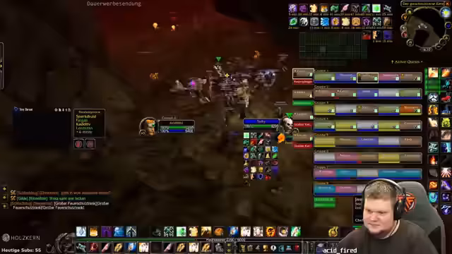 12:18:12Der Stream beginnt mit der Koordination des Raids im Schmelzkern. Es geht darum, die Spieler zu porten und zu positionieren. Man beschließt, zunächst einen bestimmten Mob, den Vogel, anzusprechen, und dafür eine taktische Position einzunehmen, die frei von Gegnern ist. Nachdem der Vogel gespawnt ist, werden alle Spieler aufgefordert, sich darauf zu konzentrieren und ihn gemeinsam anzugreifen. Der Ton ist gestresst, aber es wird sichergestellt, dass jeder weiß, was zu tun ist.