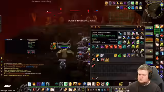 06:51:35Der Streamer äußert seine Befürchtungen als Magier, im direkten Kampf zu stehen, und betont seine Position im Hintergrund. Es wird die strategische Nutzung von Feuerschutztränken und ein Umhang mit hoher Feuerresistenz für spezifische Bosskämpfe erörtert, um effektiv gegen Feuerschaden vorgehen zu können.