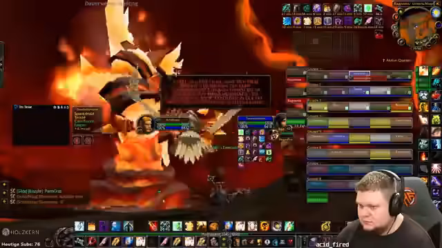 10:46:37Der Kampf gegen den 'Feuergott' erfordert maximale Konzentration. Der Boss verursacht Living Bombs, die auf zufällige Spieler gelegt werden. Betroffene müssen sofort nach links ausweichen, um den Raid nicht in die Luft zu jagen. Heiler müssen einen Mana-Debuff Dispellen, und Melees müssen zwischen den Feuergewitter-Wellen ausweichen, um überleben zu können. Die Kommunikation via Voice-Comms ist hier der Schlüssel zum Erfolg.