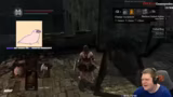 02:25:18Der Streamer erreicht eine Stelle mit mehreren 'Black Knights', die er als seine persönliche 'Nemesis' bezeichnet und die ihn regelmäßig in Schwierigkeiten bringen. Er beschreibt, dass er oft daran scheitert, weil er seinen Sield nicht richtig bedient und während der Blockade zu wenig Energie regeneriert. Die Situation eskaliert, als die Gegner ihn gleichzeitig angreifen, und er versucht, mit improvisierten Taktiken wie Brandbomben und schnellen Ausweichmanövern zu überleben.