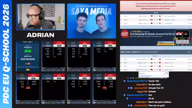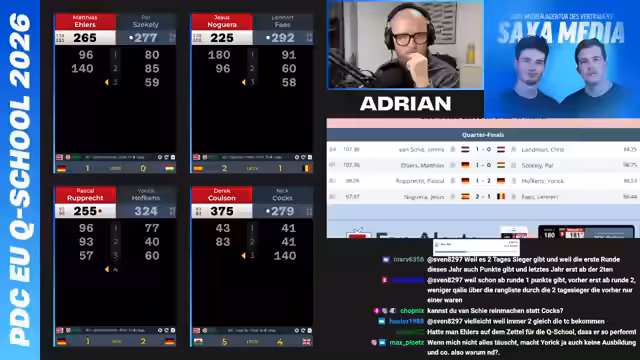 00:04:29Der Stream startet mit herzlichen Begrüßungen und einer Vorstellung des dritten Tages der PDC Q-School. Der Fokus liegt auf der Bedeutung der heutigen Auslosung, die für die deutschen Spieler besonders ungünstig ausgefallen ist. Zahlreiche deutsche Top-Spieler erhalten herausfordernde Auftaktgegner, was zu spannenden und potentially entscheidenden Partien führt. Die Spannung steigt, da die ersten Runden beginnen und einige Spieler mit katastrophalen Auslosungen konfrontiert sind.