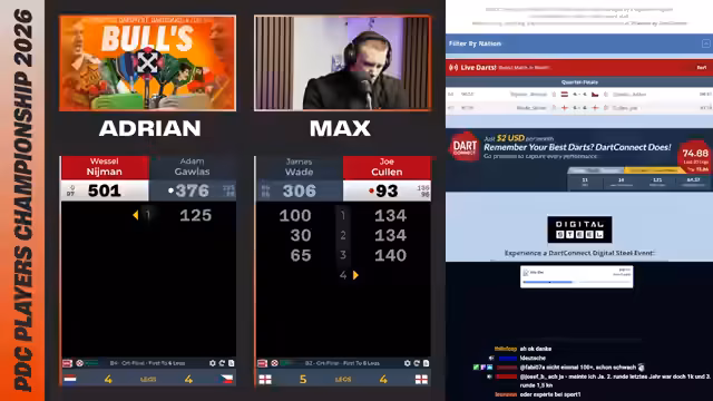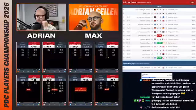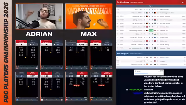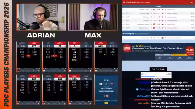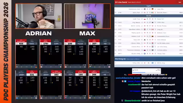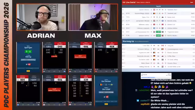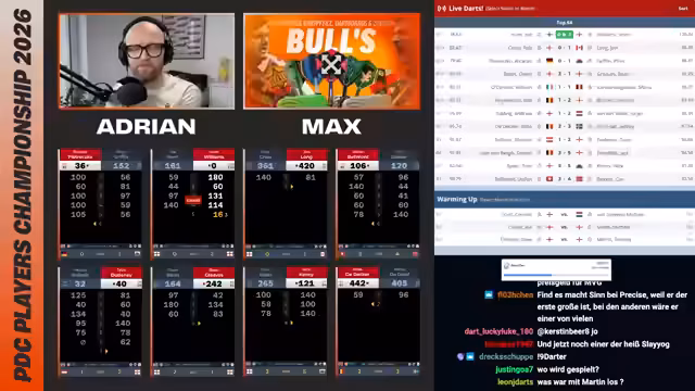 Erste Minuten des Streams und aktuelle Darts-Ergebnisse