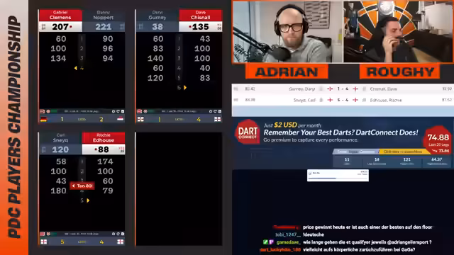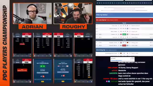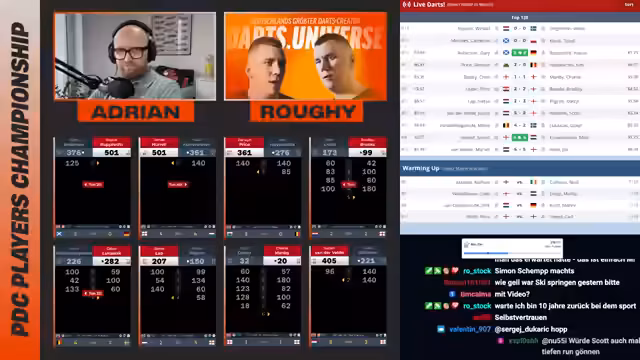 00:05:00Der Stream startet mit der Begrüßung der Zuschauer und der Ankündigung des Players Championship Turniers Nummer 2 als Auftakt in die neue Saison. Neben dem Streamer Adrian Geiler ist Raffi von der RDL anwesend, der das Format als besondere Serie für Nerds hervorhebt. Besonders betont wird, dass die Turniere ohne Zuschauer stattfinden und sich dadurch auf das reine Dart-Spiel konzentrieren. Als Gastgeber werden die ersten beiden Spiele kostenlos auf Twitch gezeigt, während der Rest über PDC TV zu verfolgen ist.