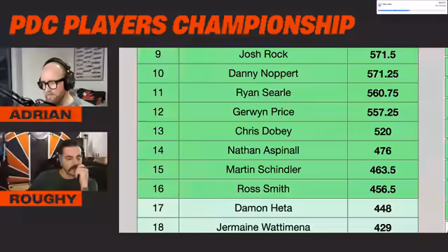 04:56:37Der Streamer beleuchtet die verschiedenen Rennsituationen für die wichtigsten Turniere. Beim World Matchplay Race kämpfen Spieler wie Dave Chisholm und Peter Wright um verbleibende Plätze. In der Pro Tour Order of Merit ist Damon Hatter nur auf Platz 16 und muss um seine Teilnahme bangen. Für die European Tour müssen einige Top-Spieler, darunter Peter Wright und Rob Cross, in den Qualifier starten, während andere wie Ratajski bereits qualifiziert sind.