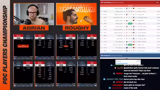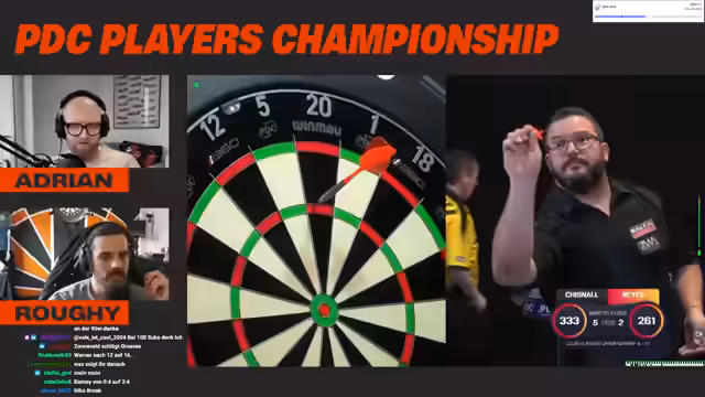 00:05:03Der Stream begrüßt die Zuschauer zum Players Championship Turnier Nummer 4 in Wigan. Es wird erläutert, dass das Turnier ohne Zuschauer stattfindet und die Deutschen eine etwas geringere Anzahl an Teilnehmern als sonst haben, da Martin Schindler krank ist und Matthias Ehlers unklar ist. Das Streaming-Angebot umfasst zwei offizielle PDC-Boards, welche die komplette Übertragung zeigen, und weitere Boards sind auf der PDC-Plattform verfügbar. Die Kommentatoren stellen zudem die besondere Situation um James Wade hervor, der an diesem Tag die Chance hat, als erster Spieler die Marke von 1000 Siegen bei Players-Championship-Turnieren zu durchbrechen.