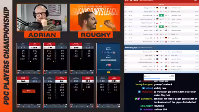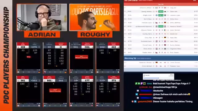 00:00:00Der Stream beginnt mit der Begrüßung der Zuschauer und der Bestätigung, dass alle technischen Probleme gelöst sind. Kommentator Adrian Geiler nennt aktuelle Spieler, die im Fokus stehen, und gibt einen Hinweis darauf, dass Co-Kommentator Raffi nun für PDC TV arbeitet. Es werden frühere historische Duelle, wie die zwischen Max Hopp und Rob Cross, erwähnt und ein möglicherweise ähnlicher Ausgang für das aktuelle Spiel ins Spiel gebracht.