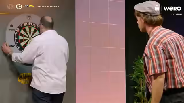00:36:45Adrian stellt das erweiterte Team Double Dipper vor, das von Coach Arno Merk angeführt wird. Arno Merk ist ein Dart-Profi und WM-Held. Bela, der Kapitän des Teams, gibt ein Interview und äußert, dass sie mit Verstärkung heute größere Chancen auf den Tagessieg haben. Das Team sieht sich als 'die dreieinhalb Türme' und hat das Ziel, den Spieltagssieg zu holen. Adrian hebt hervor, dass ein Coach wie Arno Merk einen erheblichen Einfluss auf das Team haben kann.