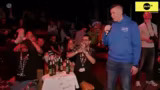 02:16:01Die Bowling-Freunde Kastrop Rauxel gewinnen das Spiel mit 2-0 gegen den DTV Basilia München. Im Anschluss daran wird ein Interview mit Levi Penel geführt, das als Spannungspunkt des Abends gilt. Levi äußert sich zu seiner Leistung und seinem Rückenproblem, während er gleichzeitig für das Halbfinale gegen Team Double Dipper oder Team Underberg qualifiziert. Er betont, trotz des Alters Spaß am Dart zu haben und seine Chance nutzen zu wollen.