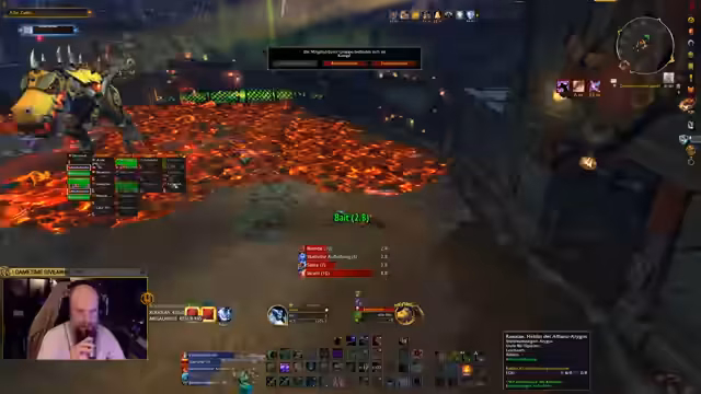 02:11:08Die Gruppe verfolgt einen entspannten Ansatz für Hardcore-Raids, da viele Mitglieder Familie und Beruf haben. Trotzdem meistern sie die Herausforderungen gut. Es wird kurz auf die Boss-Taktik eingegangen, insbesondere die Einteilung bei Erdgefängnissen und die Vorgehensweise in verschiedenen Phasen des Kampfes. Gruppen werden für bestimmte Aufgaben eingeteilt, wie das Ablegen von Erdgefängnissen auf blauen und grünen Markierungen. Der Fokus liegt auf präziser Ausführung und Koordination, um Adds zu töten und den Boss effektiv zu kontrollieren. Besonderes Augenmerk gilt dem korrekten Platzieren der Minen und dem rechtzeitigen Auslösen von Effekten, um den Bosskampf erfolgreich zu gestalten. Die Bedeutung von klaren Ansagen und schneller Reaktion auf wechselnde Situationen wird hervorgehoben, um Chaos zu vermeiden und den Boss zu besiegen. Trotz einiger Fehler und witziger Momente während des Kampfes, wird der Boss letztendlich besiegt.