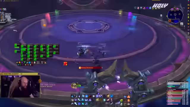 02:28:09Es wird die Fähigkeit 'Die Jagd' erklärt, bei der Spieler durch zwei grüne Linien verbunden werden und andere Spieler sich zwischen diese Linien stellen müssen, um den Schaden aufzuteilen. Auf HC müssen die Spieler in einem bestimmten Muster in dieser Linie stehen, wobei die Kreise um die Spieler sich nicht überlappen dürfen. Es wird ein spezieller Spot für Gnome, Goblins und Vulpera erwähnt. Die zweite HC-Änderung betrifft die Intermission-Phase, in der Orbs vom Rand der Plattform eingesammelt werden müssen, aber nicht zu viele auf einmal. Spieler sollen sich langsam vom Boss heranziehen lassen und auf ihre Debuff-Leiste achten, um nicht zu viele Kugeln zu nehmen. Es wird betont, dass es sich um einen typischen Council-Fight handelt, bei dem es wichtig ist, auf die Ansagen zu hören. Kampfrausch soll am Anfang genutzt werden und der Schaden soll hauptsächlich auf den Gegner mit dem meisten Leben fokussiert werden. Heilern wird empfohlen, bei 6 bis 7 Stacks zu dispellen, es sei denn, die Spieler benötigen es früher.